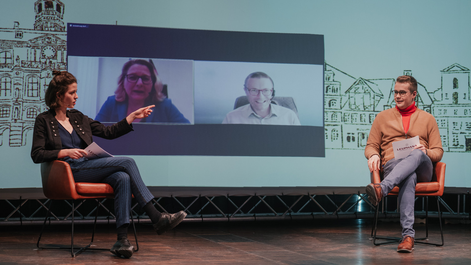 Gemeinsam mit Akteur*innen aus Politik und Gesellschaft, Wirtschaft und Forschung fragten die Erstsemester-Studierenden danach, was die Stadt der Zukunft auszeichnet. Auf der digitalen Konferenz vom 23. bis zum 26. Februar 2021 hat unser Livestudio jeden Tag zu Keynotes und Magazinen eingeladen. Zu den prominenten Gästen gehörten Bundesumweltministerin Svenja Schulze, die Transformationsforscherin Maja Göpel, der Philosoph Richard David Precht, die GRÜNEN-Politikerin Aminata Touré und die Europa-Vordenkerin Ulrike Guérot.