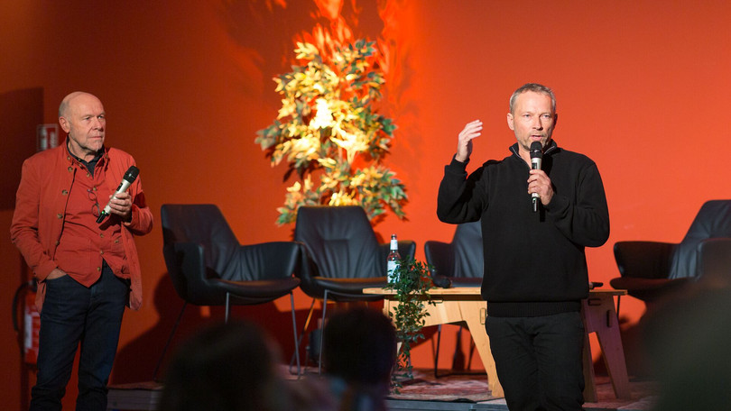 Die abschließendes Talk-Runde ordnete das Ökosystem Moor aus verschiedenen Blickwinkeln ein. Oliver Mathes, M. Mus. Musiktheorie, Lehrkraft für besondere Aufgaben, Leuphana Institut für Kunst, Musik und ihre Vermittlung, gab den Diskutierenden im „Leuphana Wohnzimmer“, wie die gelungene Raumgestaltung im Forum genannt wurde, spürbar Zeit. Die Teilnehmer*innen konnten sich gut zu dem Titel der Unterredung „Die Akustik der Moore und die gesellschaftliche Transformation“ äußern. Das passte zu dem Eingangszitat von Hubert Wiggering, sich auf Langsamkeit der Moor-Entwicklung einzulassen, um ökologische Folgen und mögliche Verhaltensänderungen zu bedenken. Dr. Vicky Temperton, Professorin für Ecosystem Functioning & Services, Fakultät für Nachhaltigkeit an der Leuphana nahm das Zeitthema auf und berichtet von einer gut 10.000 Jahre alten Moorprobe, die eine frische Pflanze zu Tage förderte. Innerhalb weniger Stunden oxidierte das zarte Grün an der Luft und ging ein. Dieses Ereignis habe der Wissenschaftlerin noch einmal vor Augen geführt, in welchen langen Zeiträumen natürlich Entwicklungen ablaufen und dann von menschlichem Einwirken im Handumdrehen radikal verändert werden. Zur Einordnung: Moore wachsen pro Jahr nur um einen Millimeter.