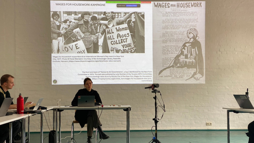 - Elena Stolberg (Abschluss 2025) analysierte in ihrem Vortrag Das politische Erbe der „Wages for Housework“-Bewegung: „Care Income“, „Basic Income“ und „Commons“ drei Aktualisierungsansätze der Bewegung der 1970er Jahre und deren historisches Verhältnis.