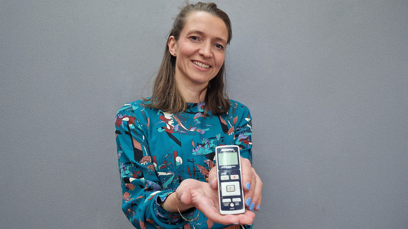 Prof. Dr. Lena Knappert hält eine kleine Maschine in der Hand, die mit ihr um die Welt gereist ist. Den digitalen Rekorder hatte sie in China dabei und in den USA, um Interviews aufzuzeichnen. Auch nach Lüneburg hat sie das Gerät mitgebracht, obwohl sie es wegen der veralteten Technik nicht mehr für ihre Forschung nutzt. In jüngster Zeit aber hat der Rekorder in ihrem Privatleben eine besondere Bedeutung gewonnen. Aber dazu später.