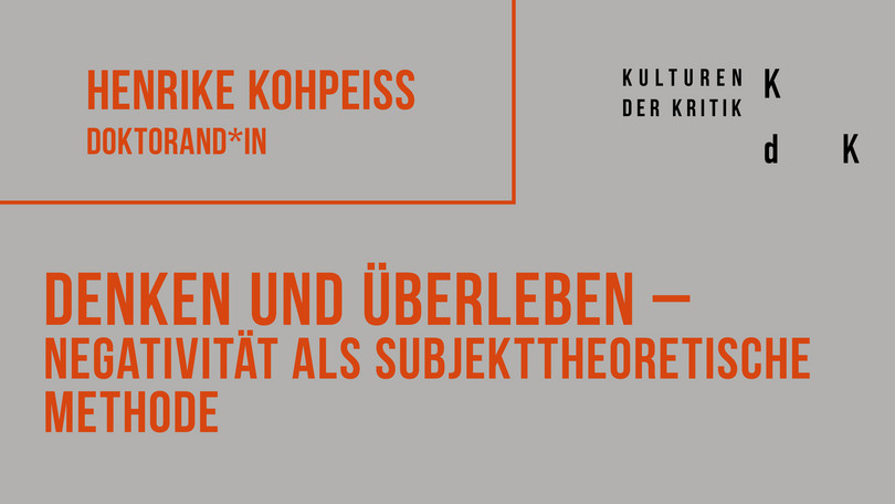 Mein Dissertationsprojekt zielt auf eine Subjekttheorie, die gleichzeitig der Bedrohung des Lebens durch diskriminierende Machtstrukturen und der Herstellung widerständiger Strategien innerhalb dieser Bedrohung Rechnung trägt. Das Gesamtargument wird erläutern, inwiefern das Überleben eine Erfahrung darstellt, innerhalb derer der Begriff Freiheit neu besetzt wird. Das Erleben von Unterdrückung, Diskriminierung oder Missbrauch hat Konsequenzen für das Selbstverständnis von Subjekten und wirft die Frage auf, inwiefern die dadurch entstandenen affektiven Einschnitte durch theoretische Arbeit einzuholen sind. Die überstandene Bedrohung ist ein Geschehen negativer Subjektivierung, für das philosophische Begrifflichkeiten bisher kaum vorhanden sind. Unter dem Prinzip der Negativität soll die Diskrepanz zwischen erfahrenem Leid und theoretischer Arbeit durch eine affekttheoretische Perspektive auf die Arbeiten von Saidiya Hartman und Theodor W. Adorno untersucht werden. Während Hartman aus dem konkreten historischen Fall der Sklaverei in den USA eine Subjekttheorie entwickelt, bildet bei Adorno die methodische Negativität einen kontinuierlichen Bezugspunkt seiner Philosophie. Aus dem Vergleich und der Beschäftigung mit diesen verschiedenen Zugriffen auf affektives Leiden sollen die jeweiligen Subjektverständnisse von Hartman und Adorno entwickelt und anschließend daraufhin befragt werden, welche Konzepte von Freiheit sie nach sich ziehen. Der Zusammenhang von konkreter Negativität und ihren Repräsentationsformen in der Philosophie wirft die theorieästhetische Frage auf, welche Formen von Theorie diese umkämpften Verhältnisse angemessen erfassen können. Wie kann einer identity produced by negation (Hartman 2007), die sich gerade durch die Abwesenheit von Sinnzusammenhängen konstituiert, in der Theorie Ausdruck verliehen werden?
