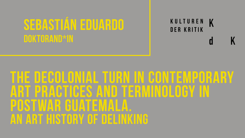 Das Dissertationsprojekt untersucht partikulare Formen, Strategien und Medien in künstlerischen und sensorischen Praktiken sowie in Praktiken des Wissens, des Redens und Schreibens über Kunst vor und nach der „dekolonialen Wende“ in Guatemala der Postkriegszeit, das heißt seit 1996. Vor dem Hintergrund (selbst-)kritischer, postkolonialer Kunstgeschichten und Theorien der Indigenität, durch die Analyse von Praktiken und Theorien der Dekolonialität und anhand eines Wissenskorpus’ über Maya-Identität, (Post-)Kriegsgeschichte und guatemaltekische Gegenwartskunst geht es mir mit dem Dissertationsvorhaben um eine Kunstgeschichte der Entkoppelung.
