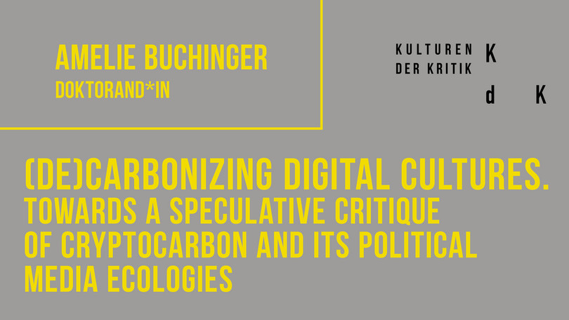In doing so, this dissertation project not only aims to provide a much needed but nuanced critique of cryptocarbon and digital (de)carbonization as a speculative proposition. Furthermore, the project takes such a critical analysis as its starting point to question the possibilities, forms, and limits of critical practices under current technological, economic, and ecological conditions and their concomitant implications on human and more-than-human life worlds in a warming world of rising atmospheric CO2 levels. It proposes to rethink decarbonization beyond techno-utopian solutionism or environmental romanticism as a critical practice of envisioning and constituting a plurality of possible post-carbon futures.