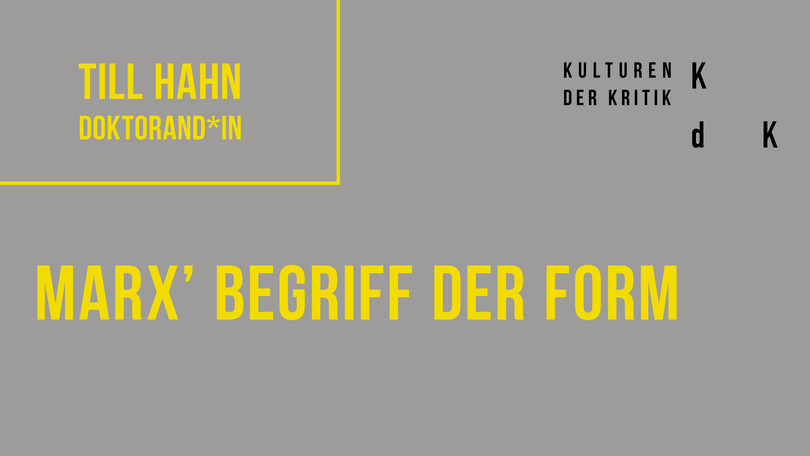 My doctoral project aims to provide a comprehensive study of the concept of form implied in Marx’s late critique of the economy. Its deduction of the concept in a detailed reading of his later work is guided by the thesis that he conceives of form as social practice. Methodologically, the study is inspired by Althusser’s notion of “symptomal reading,” that is, it seeks to unearth the concept of form, which in Marx’s original text is implicitly necessary but not explicitly defined.