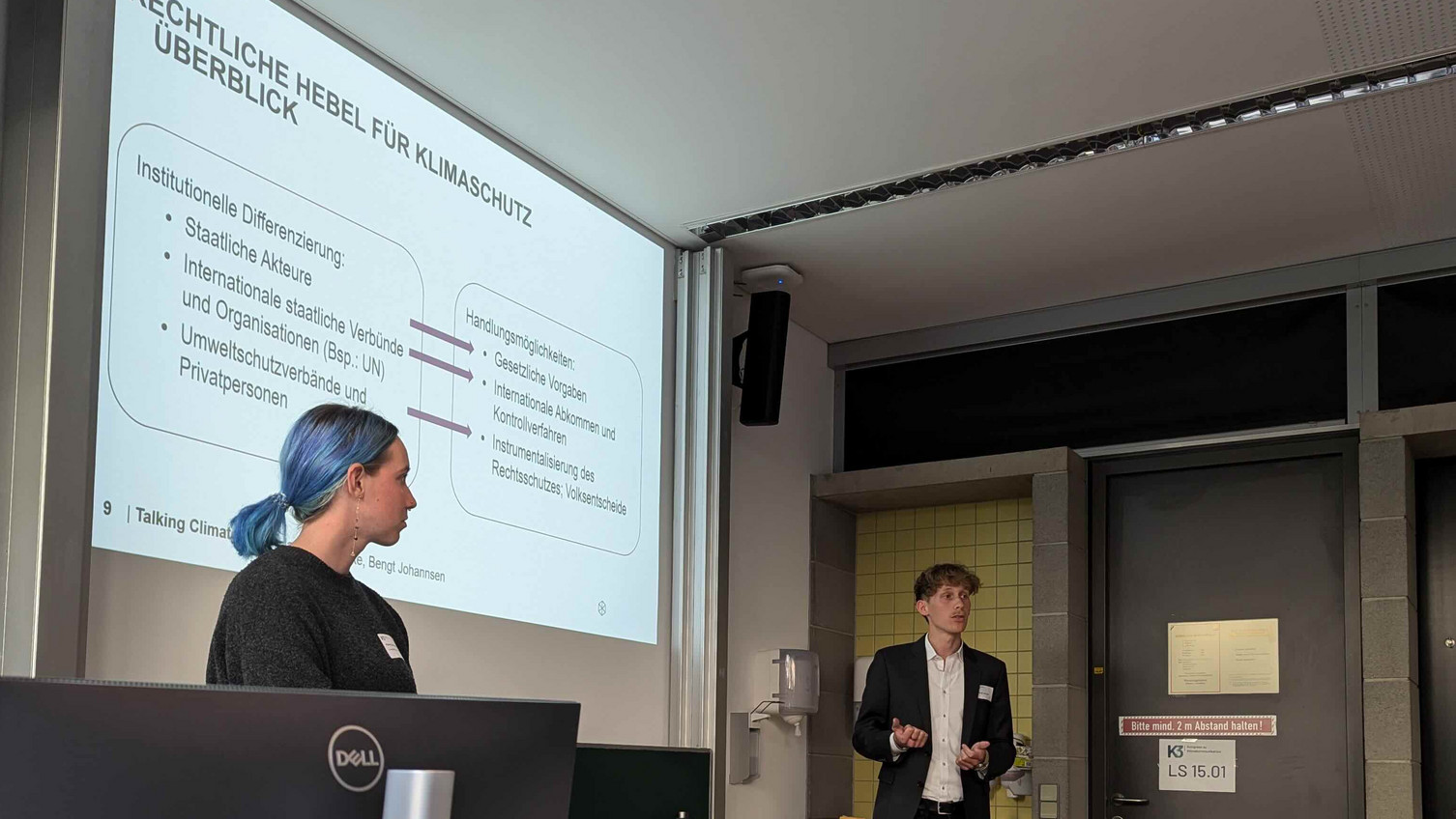The two fellows of the Joachim Herz Doctoral School of Law, Bengt Johannsen and Maren Solmecke, took this opportunity to hold a workshop entitled ‘Talking climate law - communication about law in social transformation’, in which 25 participants took part. The workshop began with a 30-minute keynote speech by the two fellows on the legal framework of the climate crisis and the legal levers for climate protection.