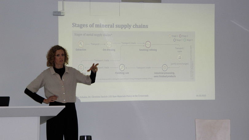 The event marking the start of the 2025/26 academic year (cf. here) focused on issues relating to global value chains. Dr Christina Saulich (Federal Ministry for Economic Cooperation and Development, BMZ) and Meike Schulze (German Institute for International and Security Affairs, SWP) gave a presentation explicitly addressing the topic of critical and strategic raw materials and the associated supply chains These materials play a prominent and indispensable role in the green transition.