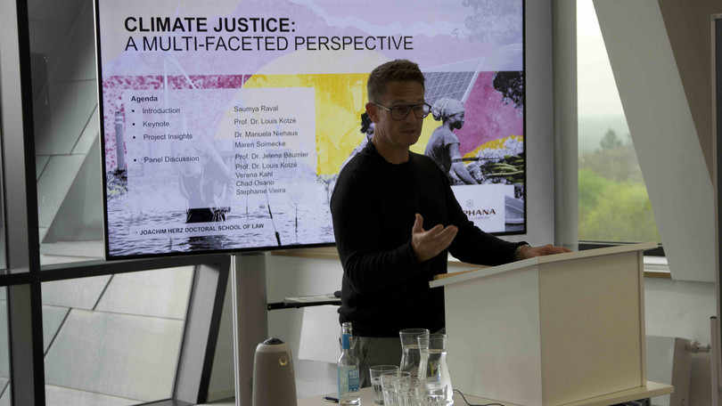 On 17 April, the Climate Justice Lab came to a close with a public project presentation. This event included a keynote speech by Professor Kotzé, exemplary presentations of two papers produced in this context by Dr Manuela Niehaus (University of Speyer) and Maren Solmecke, and a panel discussion with Professor Dr Jelena Bäumler, spokesperson for the Joachim Herz Doctoral School of Law, among others.