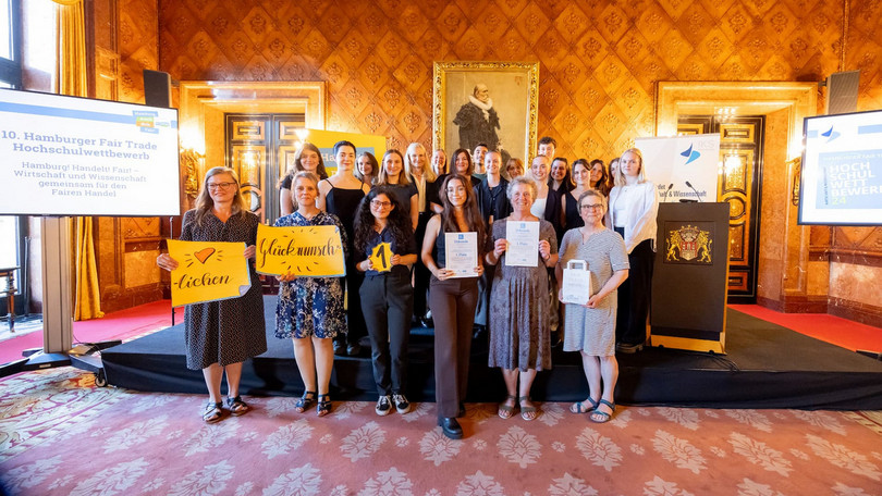 The Lueneburg team took on the Weltladen task as part of the 10th Hamburg Fair Trade University Competition. In April 2024, the team presented themselves to a jury in Hamburg under the motto ‘Hamburg! Trade! Fair!’ and won.