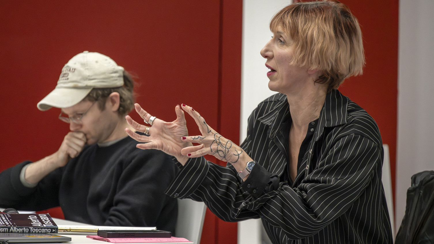 LIAS Fellows Kerstin Stakemeier and Danny Hayward discussed Alberto Toscano's book Late Fascism. Hayward emphasised the adaptable nature of fascism, which cannot be captured by rigid definitions. Toscano describes it as a “counter-revolution without revolution”, which is characterised by the appropriation of left-wing concepts, for example. This creates confusion and undermines progressive movements. Toscano's focus on the temporality of fascism shows how it unfolds in late capitalism and utilises historical continuities. Kerstin Stakemeier analysed the “Alt-Right” (“alternative right”) and its infiltration of art spaces. As an example, she cited the controversy surrounding the LD50 Gallery in London in 2017, which became a centre of alt-right discourse, but also addressed the current activities of the New York gallery Reena Spaulings. Both LIAS Fellows emphasised how important it is to reclaim left-wing ideas and their anchoring in the original context of struggle and liberation, and to strategically counter the destructive appropriation of progressive resources by fascism.