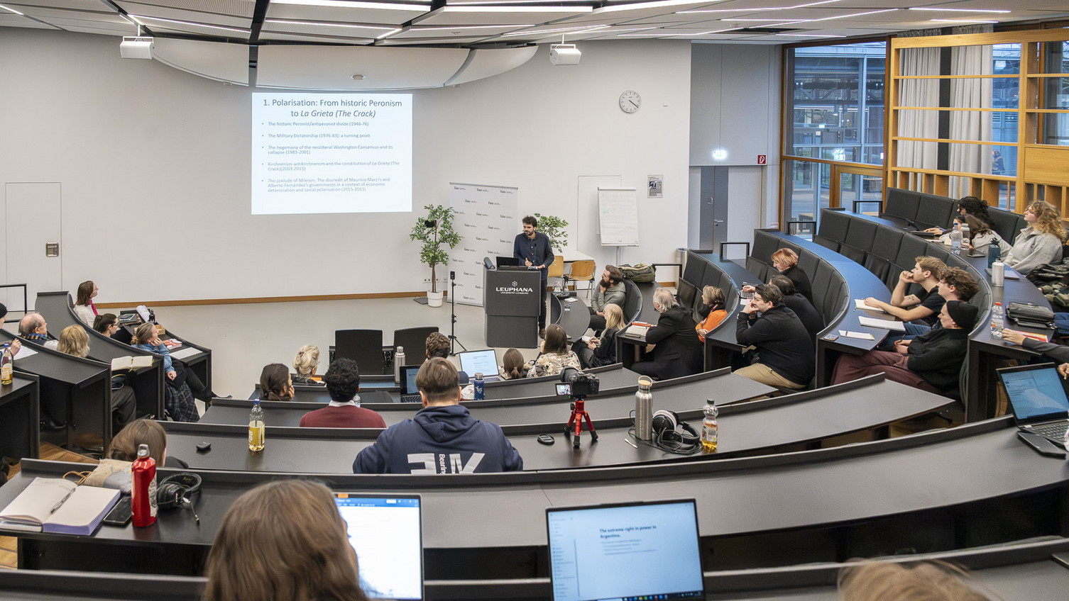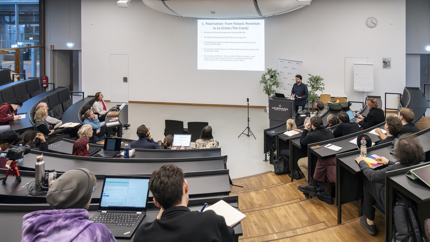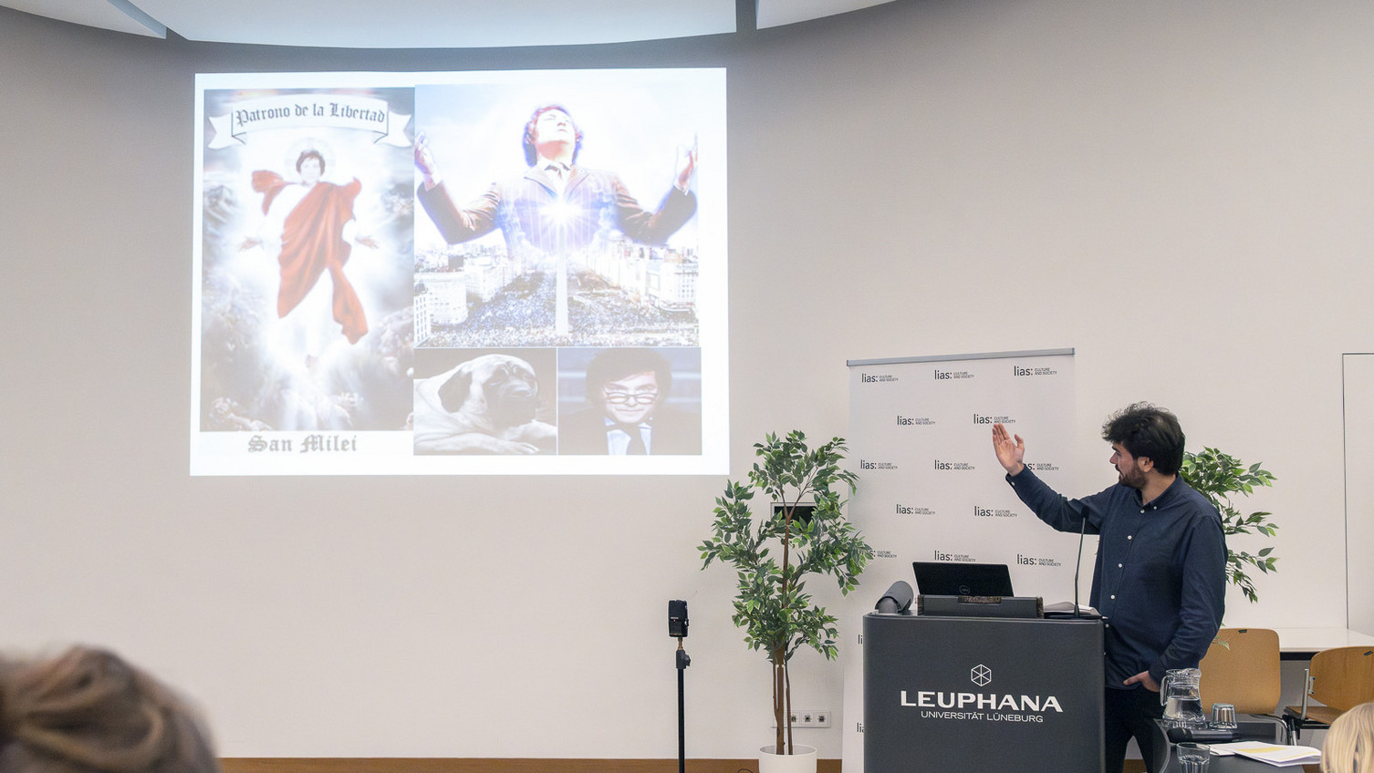 In his lecture “The Extreme Right and Present-Day Capitalism: The Examples of Argentina and Spain”, LIAS alumnus Adrià Alcoverro presented his research on the rise of the extreme right in Spain and Argentina. The recent political rise of the extreme right in Argentina under the leadership of Javier Milei marks a turning point in the country's political landscape. Milei's movement (La Libertad Avanza) is characterised by a combination of radical libertarianism and reactionary elements. It relies on populist narratives, polarisation and a targeted mobilisation of right-wing emotions. Milei's movement combines the rhetoric of the anti-establishment with the structures of micro-fascism, as described by Enzo Traverso. Milei's ideology is rooted in the theories of the Austrian and Chicago schools, in particular in the writings of Murray Rothbard (1926-1995), a founder of anarcho-capitalism. Milei's strategy combines this economic radicalism with far-right, populist narratives. He sees the “collectivist left” (zurdos) as the central enemy.
