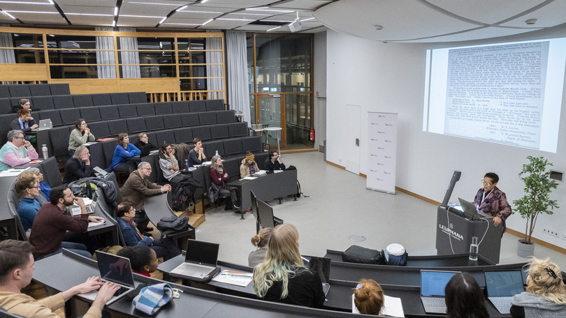 2024-01-29 Yvette Christiansë, Clair Tow Professor of Africana Studies and English Literature at Barnard College, Columbia University, took the audience in the third Leuphana Institute for Advanced Studies in Culture and Society (LIAS) Lecture on a journey into one of the historical documents from which she endeavours to glean the voices of liberated African slaves in the 19th century.