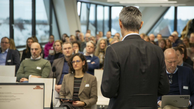 Ende Januar erlebte das Innovationsnetzwerk einen erfolgreichen Auftakt: Rund 65 Teilnehmende aus der regionalen Wirtschaft nutzten die Gelegenheit zur Vernetzung und zum fachlichen Austausch. In seinem wissenschaftlichen Impuls zeigte Prof. Dr. Stefan Schaltegger vom CSM die zentrale Bedeutung eines professionellen Nachhaltigkeitsmanagements für den Mittelstand auf und machte zugleich die Relevanz des Projekts für die Region deutlich. Dies illustrierte er an Beispielen des Energie- und des Lieferkettenmanagements für den wirtschaftlichen Erfolg.