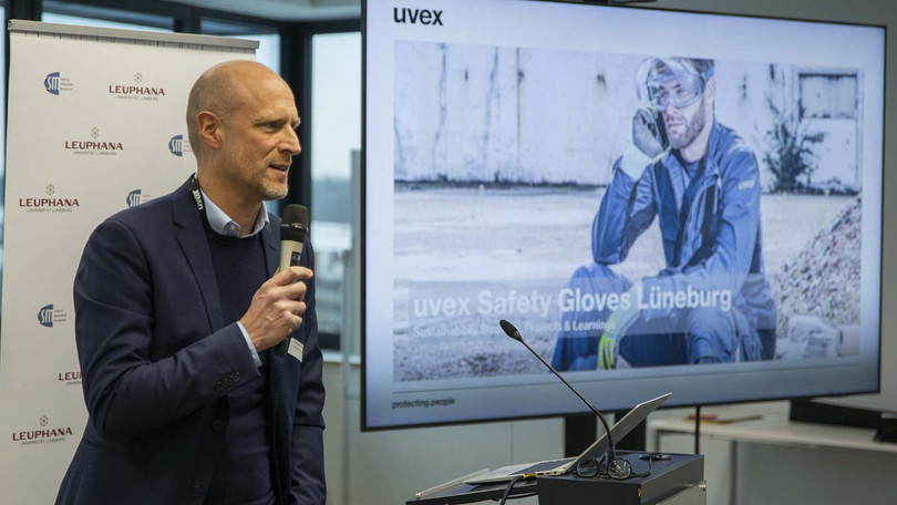 Einen Praxiseinblick brachte Carsten Baumgarten (uvex Safety Gloves) ein. Er berichtete von seinen Erfahrungen bei der Implementierung von Nachhaltigkeitsmanagement im Unternehmen und betonte, dass nachhaltige Lösungen technisch entwickelt werden müssen, damit sie skalierbar, wirtschaftlich sinnvoll und ökologisch wirksam umgesetzt werden können.