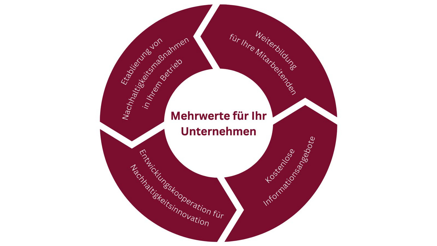 Teilnehmende erhalten Impulse aus der Wissenschaft und Best Practice-Beispiele aus anderen Unternehmen. Dadurch lernen sie, Nachhaltigkeitspotenziale im eigenen Unternehmen zu identifizieren und eigenständig konkrete Nachhaltigkeitsziele zu entwickeln. Hier steht das voneinander Lernen in Communities of Practice im Vordergrund.