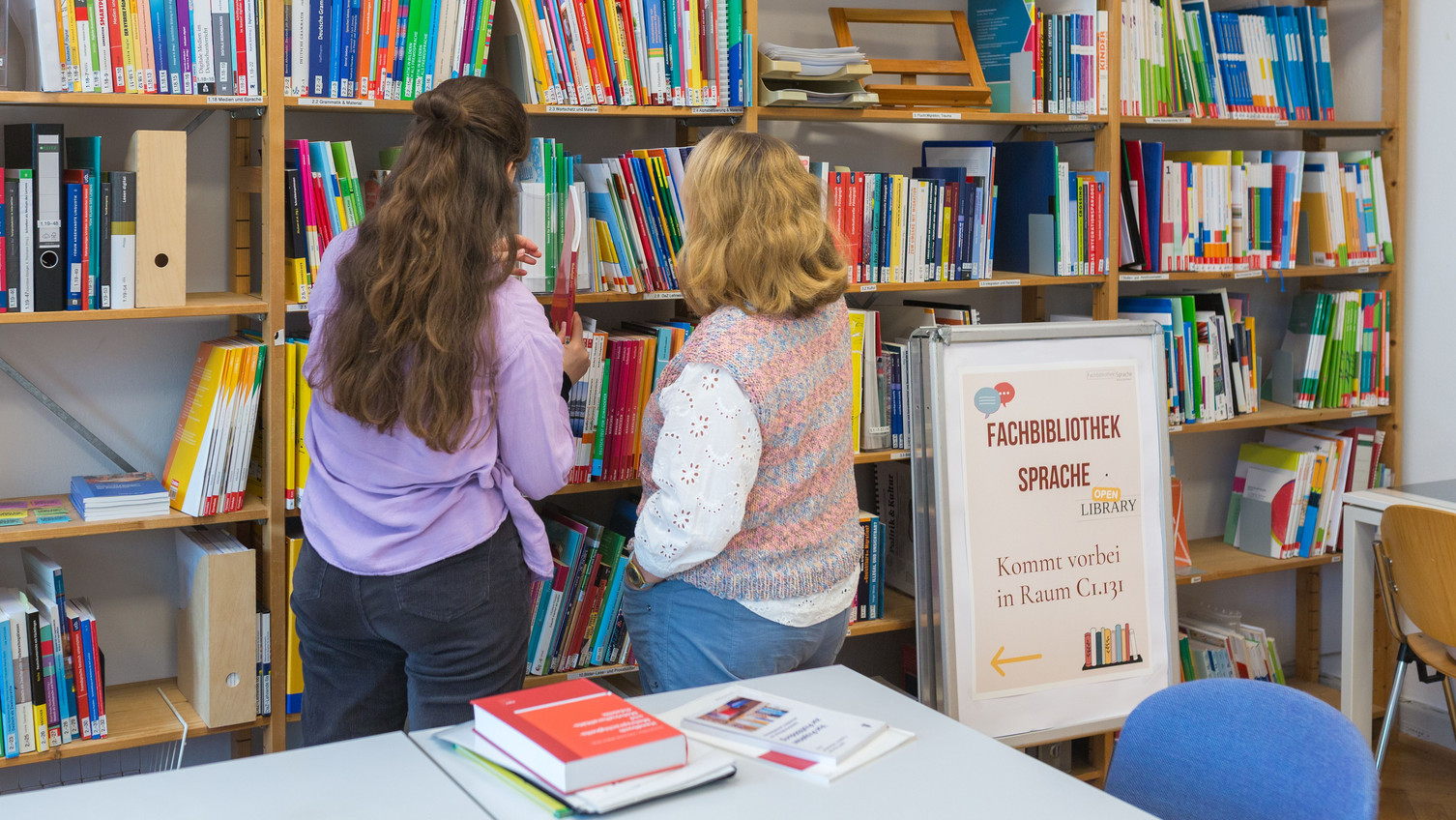 - Die Koordinierungsstelle in der Fachbibliothek Sprache, in der im Sinne eines Denk- und Arbeitsraumes (Buhrfeind & Lorenz 2020) mit ergänzenden Workshops und Beratung themenspezifisch qualifiziert wird.