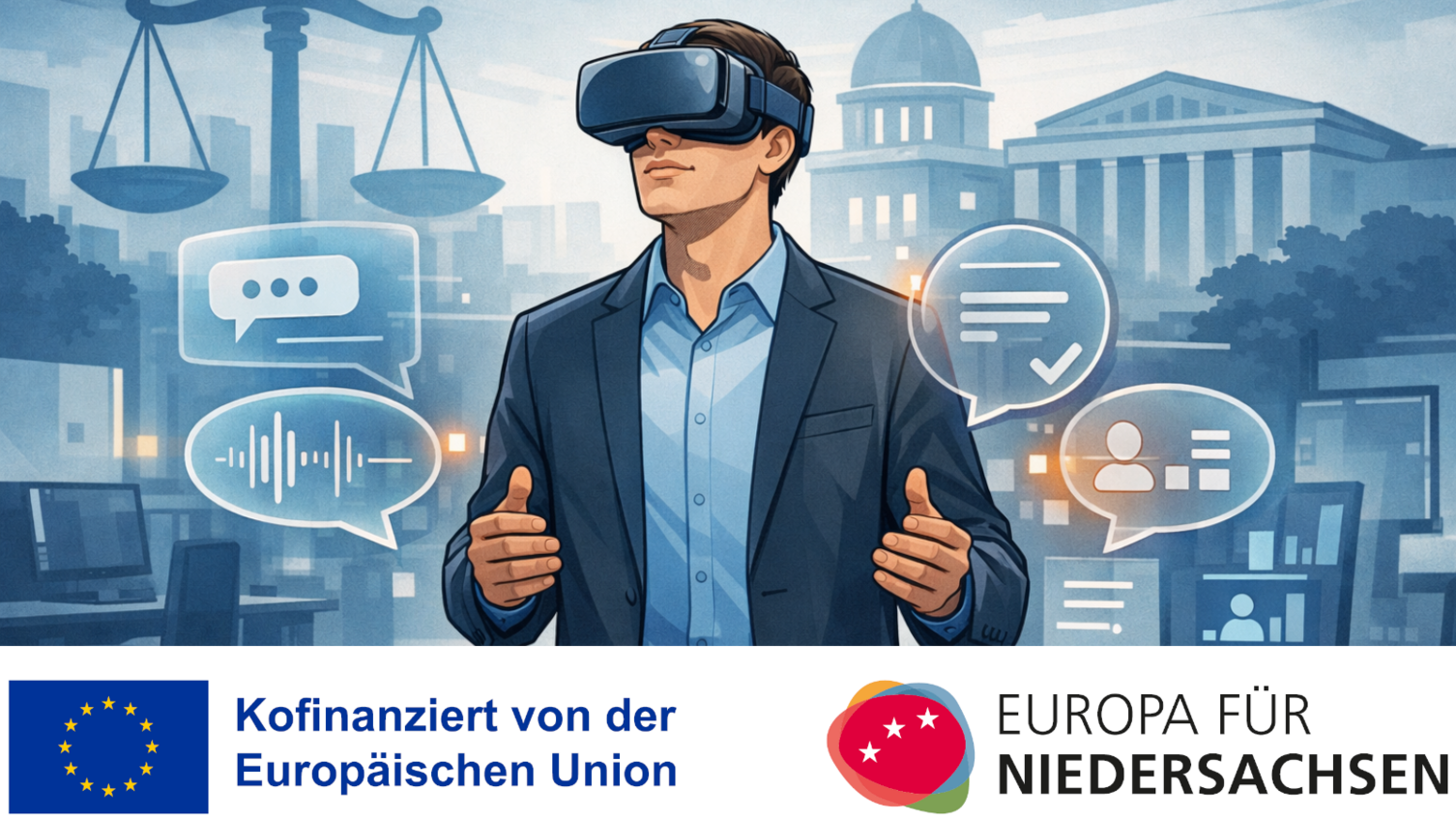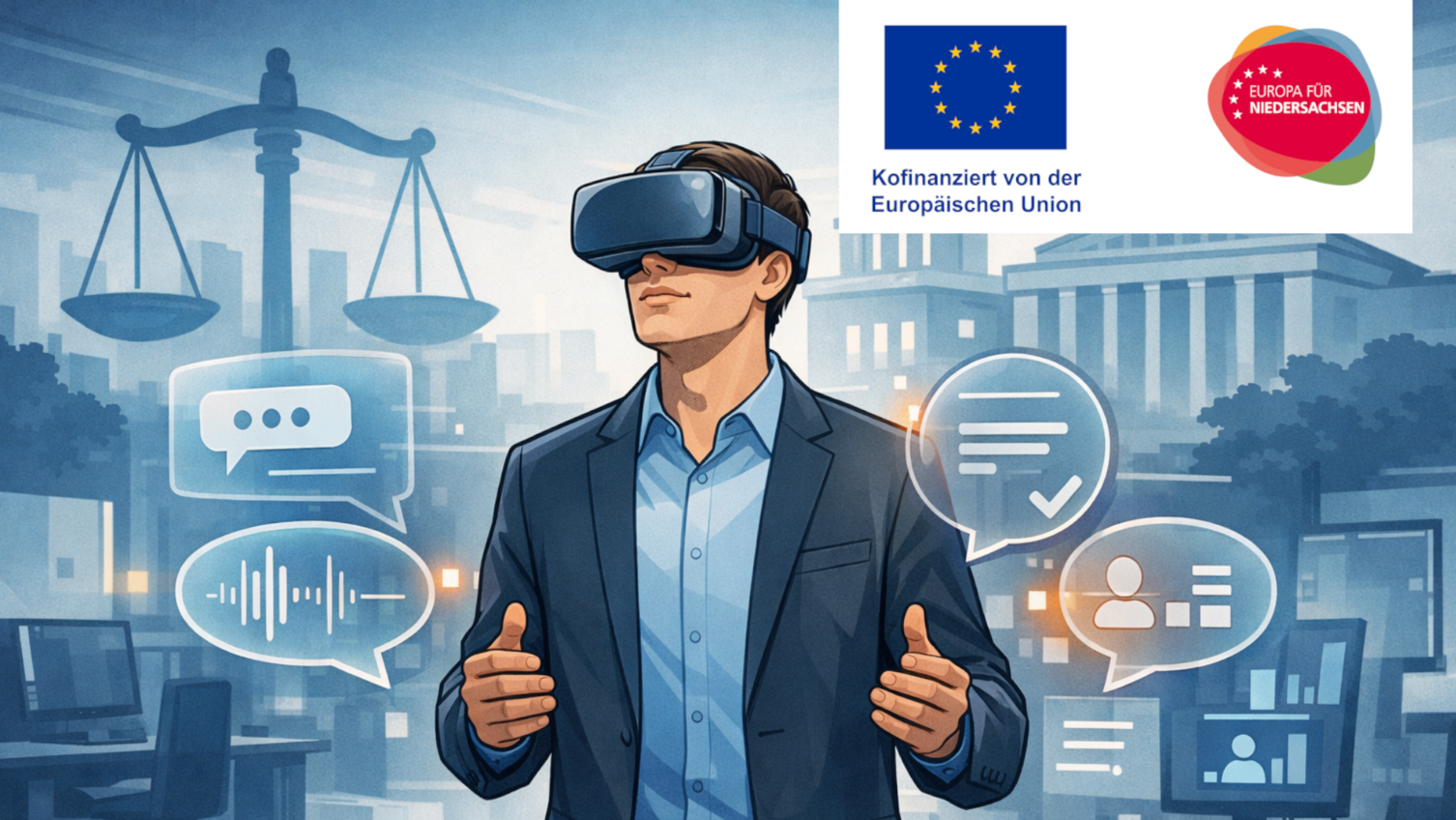 Das VR und KI Soft Skills Lab ist ein ESF-gefördertes Forschungs- und Transferprojekt zur Entwicklung innovativer VR- und KI-gestützter Coachingformate. Ziel ist es, soziale und kommunikative Kompetenzen in anspruchsvollen beruflichen Interaktionssituationen nachhaltig zu stärken – insbesondere in Justiz, Polizei und angrenzenden Bereichen des öffentlichen Dienstes.
