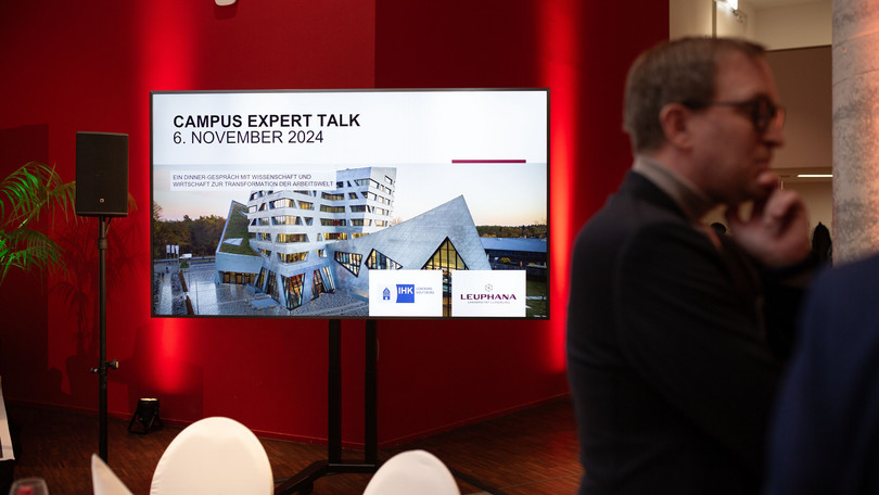 07.11.2024 Beim dritten Campus Expert Talk am Mittwoch, 6. November, diskutierten rund 50 Expertinnen und Experten im Zentralgebäude der Leuphana Universität Lüneburg über den Wandel der Arbeitswelt. Die von der Industrie- und Handelskammer Lüneburg-Wolfsburg (IHKLW) und der Leuphana initiierte Veranstaltung dient seit 2023 als Plattform für den Austausch zwischen Wirtschaft und Wissenschaft in der Region.