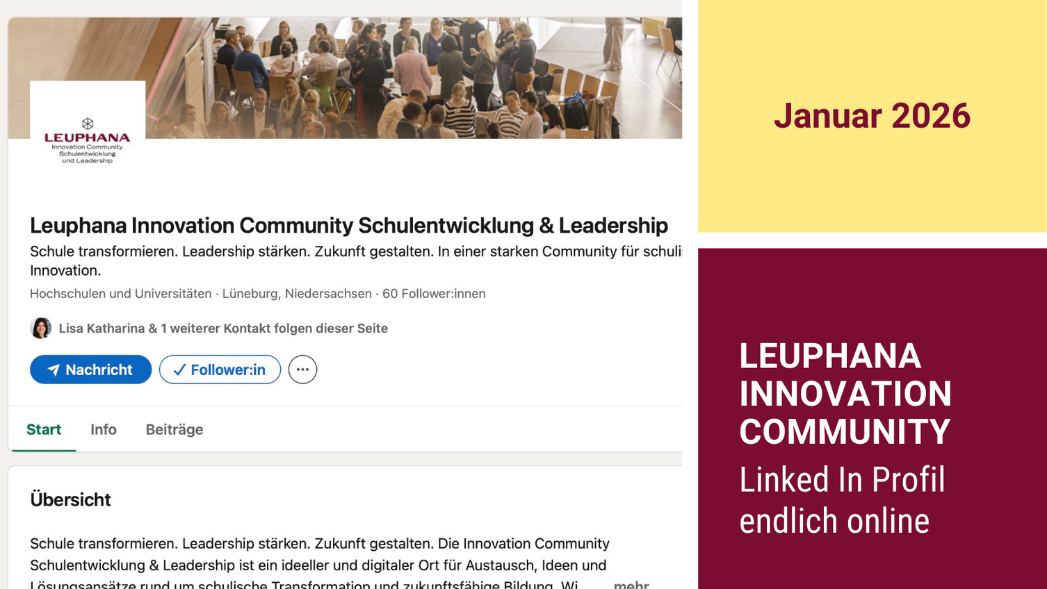 Die Leuphana Innovation Community Schulentwicklung & Leadership freut sich darauf, die Diskussionen rund um zukunftsfähige Bildung nun auch auf LinkedIn fortzuführen.
