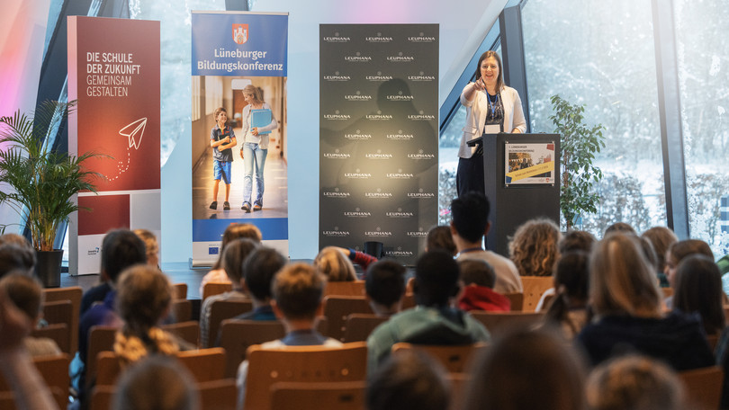 „In der Lüneburger Bildungslandschaft ist aktuell viel in Bewegung: Im kommenden Schuljahr kommt der Ganztag flächendeckend an allen Lüneburger Grundschulen. Der gemeinsame Schulentwicklungsprozess mit dem Landkreis ist angestoßen. Der Bildungspakt 2040 ist in der politischen Beratung“, sagte Lüneburgs Oberbürgermeisterin Claudia Kalisch zur Begrüßung. „Beim Thema Bildung sind wir alle gefragt, aber ganz besonders die Schülerinnen und Schüler. Sie haben heute in besonderem Maße das Wort.“ Zu der Konferenz hatte die Hansestadt in Kooperation mit der Leuphana Innovation Community Schulentwicklung und Leadership eingeladen.