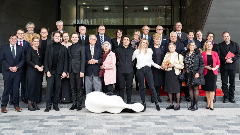 In Lüneburg spielten die vier Festival-Musiker:innen bei der Preisverleihung im Zentralgebäude der Leuphana Universität unter anderem Ausschnitte aus dem Quartett für das Ende der Zeit, komponiert von Olivier Messiaen im Kriegsgefangenenlager Görlitz in den Jahren 1940-41. Morgens hatten sie zudem ein Lüneburger Gymnasium besucht und mit den jungen Menschen über das Quartett und den historischen Kontext gesprochen. „Man kann mit Musik etwas über Geschichte lernen“, sagte der russische Cellist Alexey Stadler im Anschluss an die Preisverleihung. „Musik gibt Antworten auf Fragen, wie es weitergehen kann. Wir setzen uns mit unserer Musik für etwas ein, das alles ist außer selbstverständlich: den europäischen Frieden.“