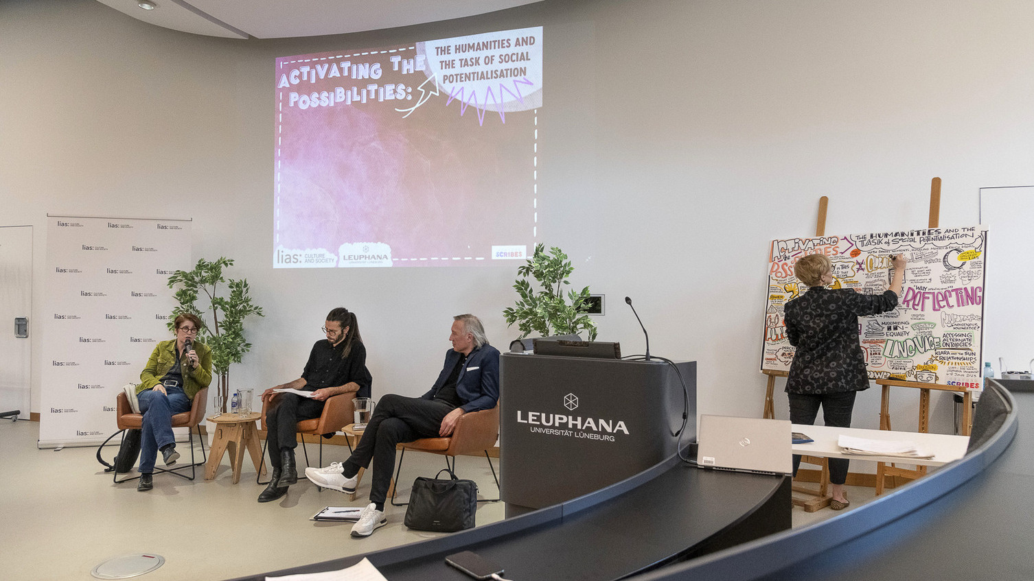 Anlässlich der Eröffnung des Leuphana Institute for Advanced Studies (LIAS) in Culture and Society diskutierten Rosalind Morris, Erich Hörl und Daniel Nemenyi das zentrale Thema "Potentialisierung".