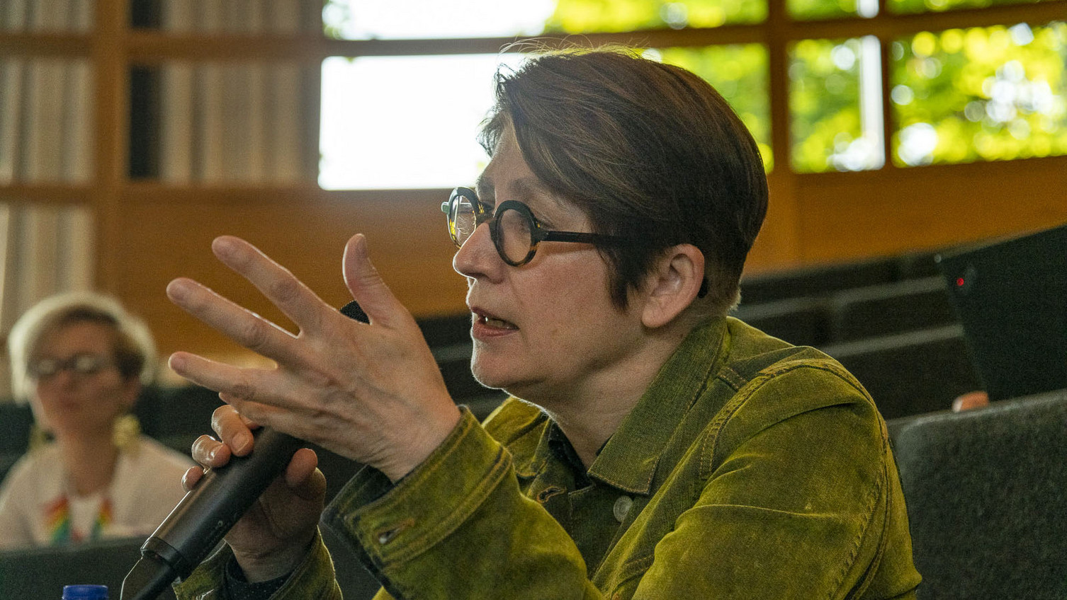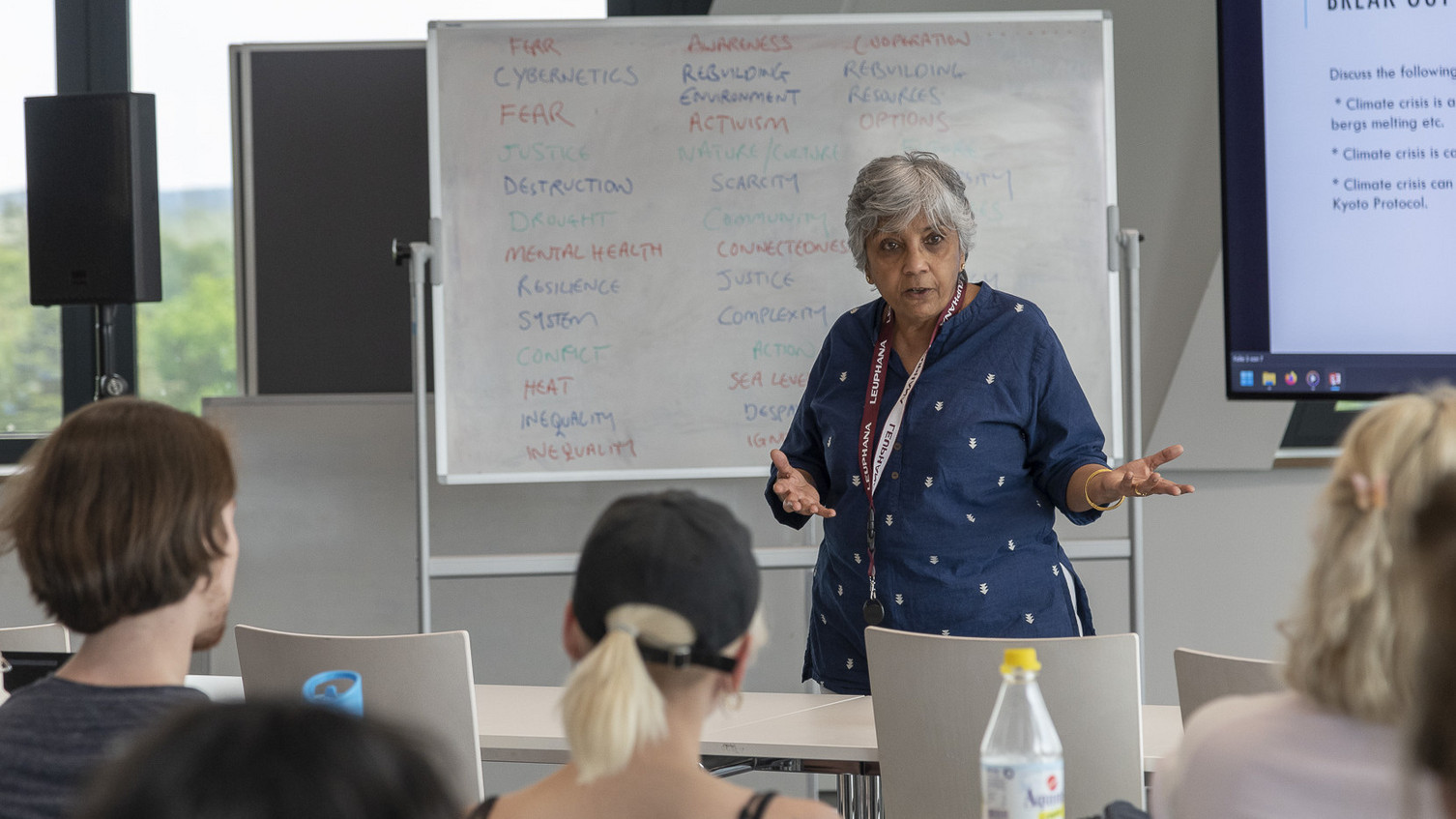 Ein Dutzend interessierter Studierender nahm am Barcamp mit Radha d'Souza am 7. Juni teil. In drei Arbeitsgruppen diskutierten sie mit der Rechtswissenschaftlerin über die Klimakrise.