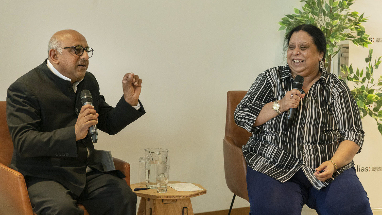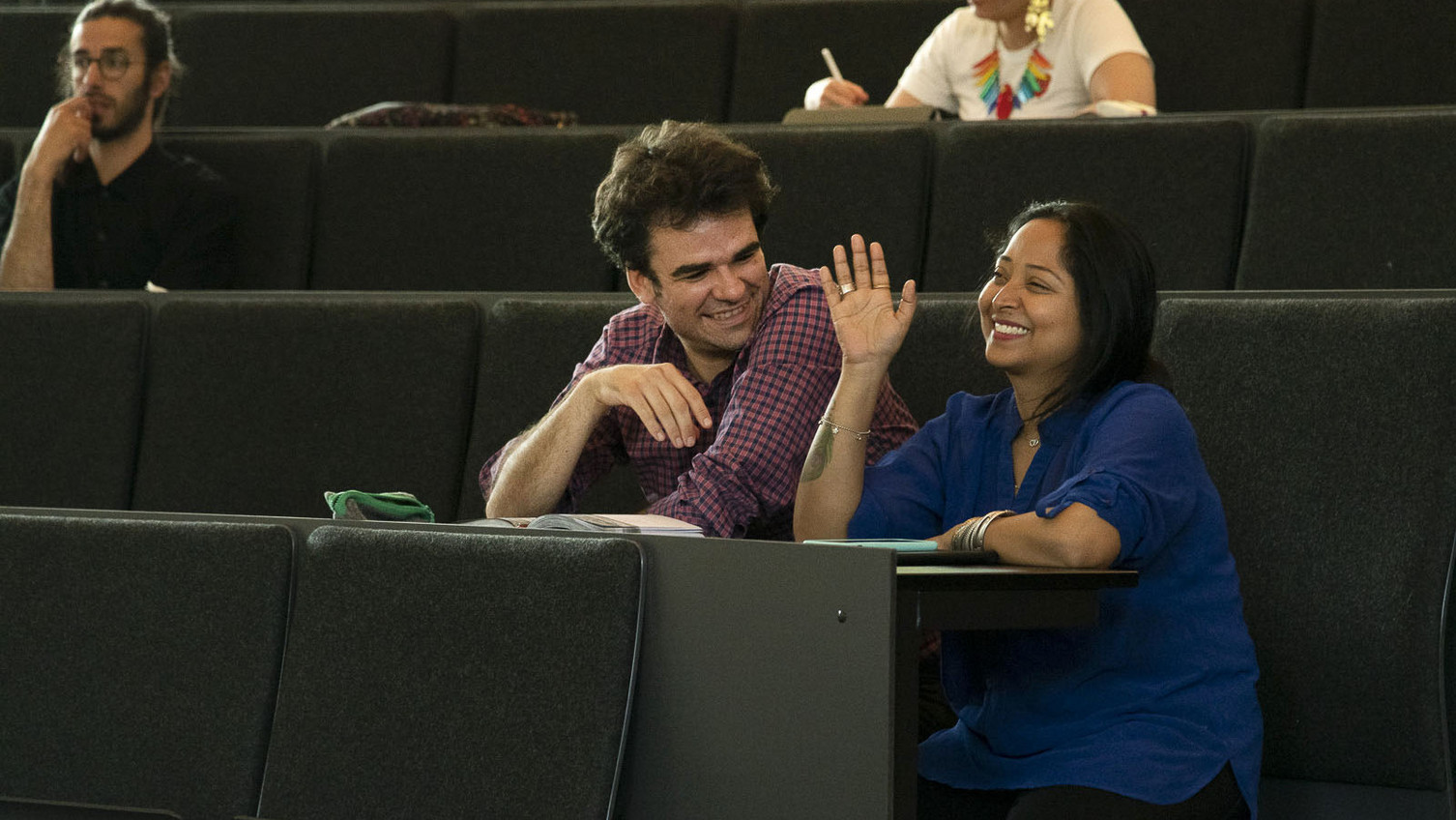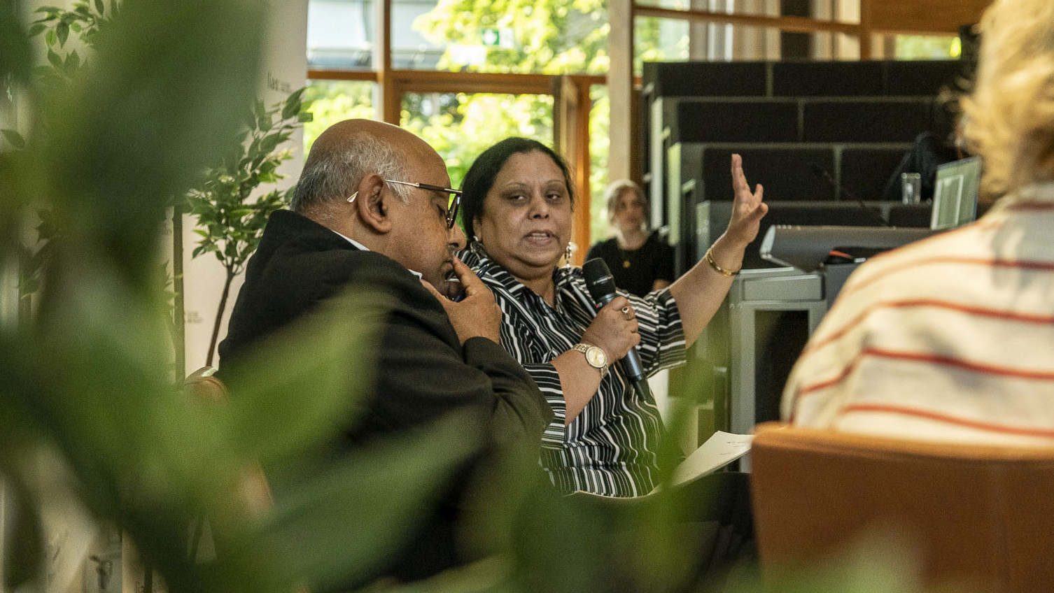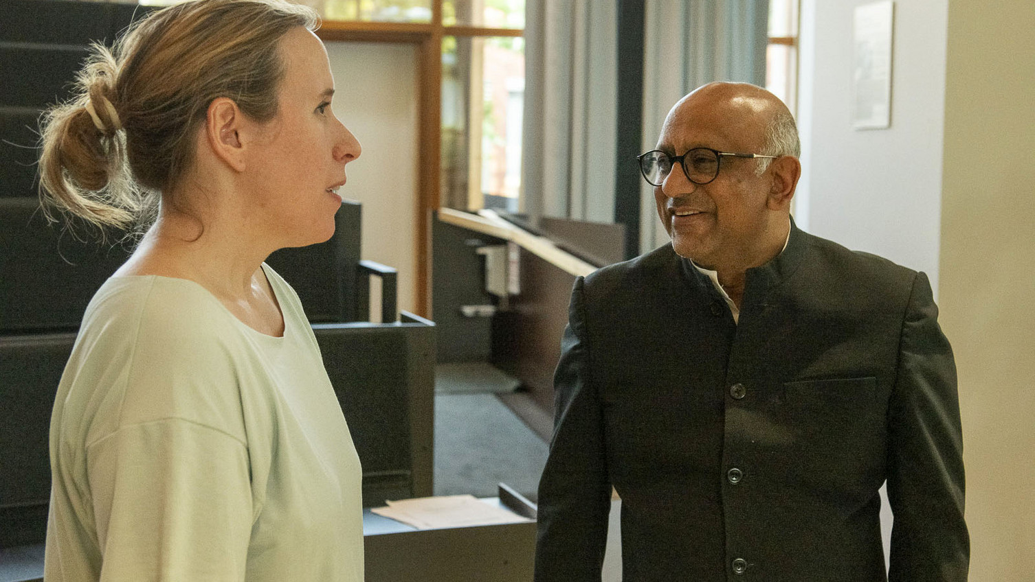 Im Anschluss an die Vorlesung diskutierte Premesh Lalu mit Paula Banerjee, ebenfalls Beiratsmitglied des LIAS. Susanne Leeb moderierte die zahlreichen Fragen aus dem Publikum.