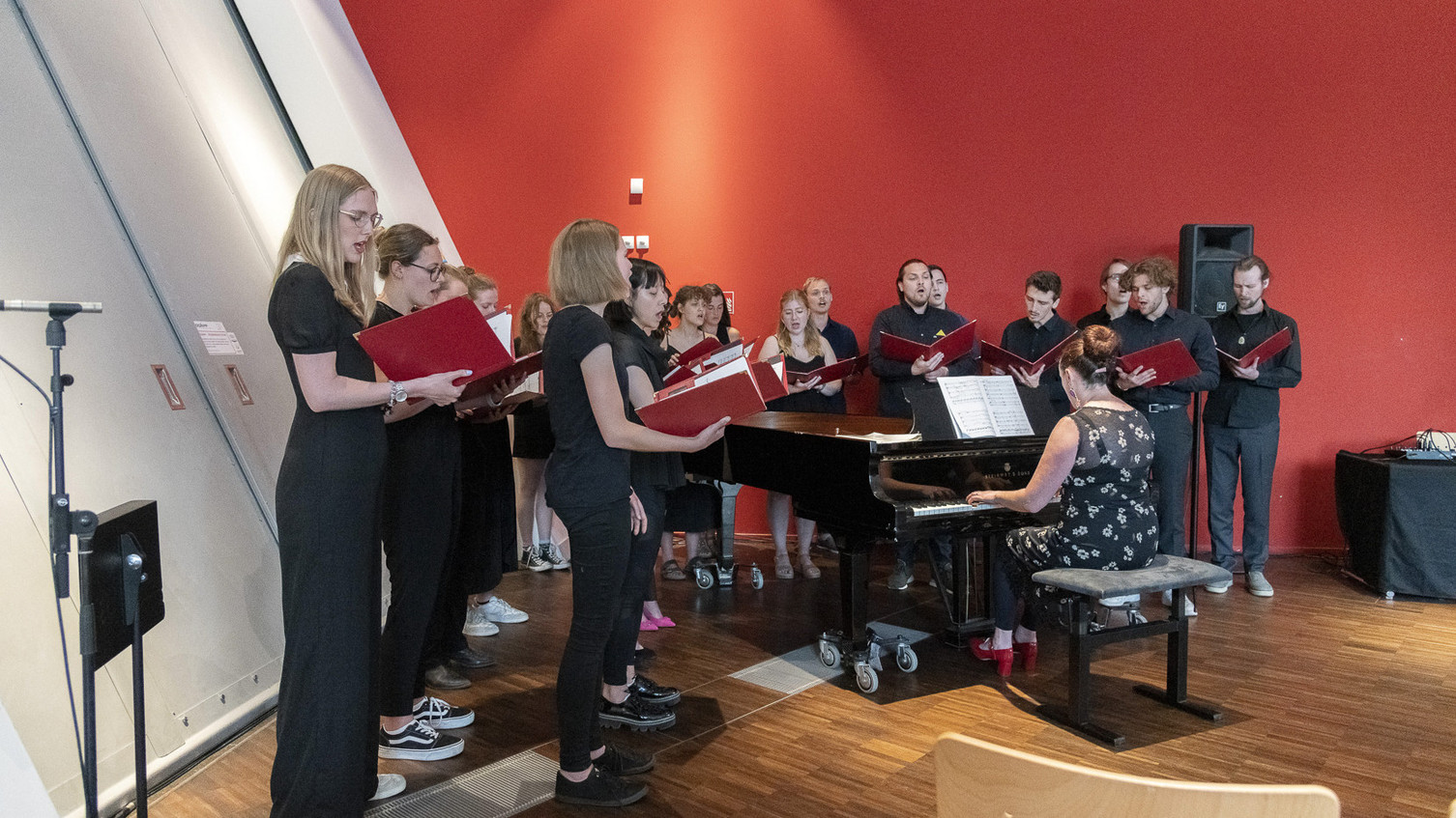 Das musikalische Programm wurde von Rebecca Lang und Quinn Frazee (Bratsche) sowie dem Leuphana Kammerchor gestaltet. Eine Sound-Performance von Artist Fellow Pedro Oliveira rundete den gut besuchten Abend ab.