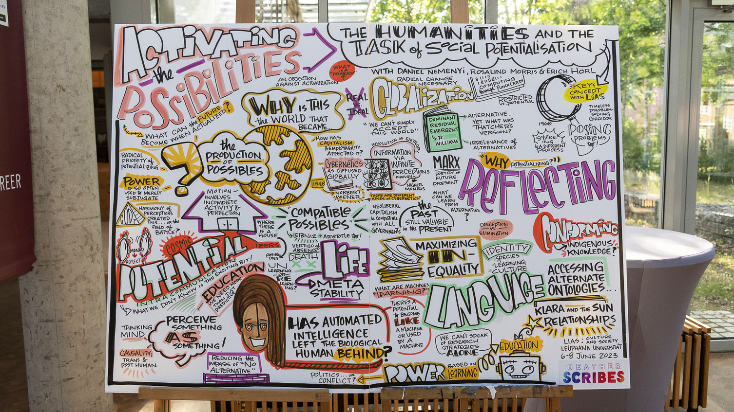 Sascha Spoun ordnete das LIAS in den Gesamtzusammenhang der Universität ein, Erich Hörl und Susanne Leeb, Co-Direktoren des LIAS stellten ihr Konzept anhand der zentralen Begriffe "Potentialisierung" und "Thinking Accross Hemispheres" vor.